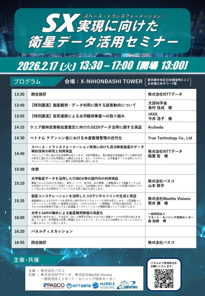 SX実現に向けた衛星データ活用セミナーが2月17日(火)に東京・日本橋にて開催されます。