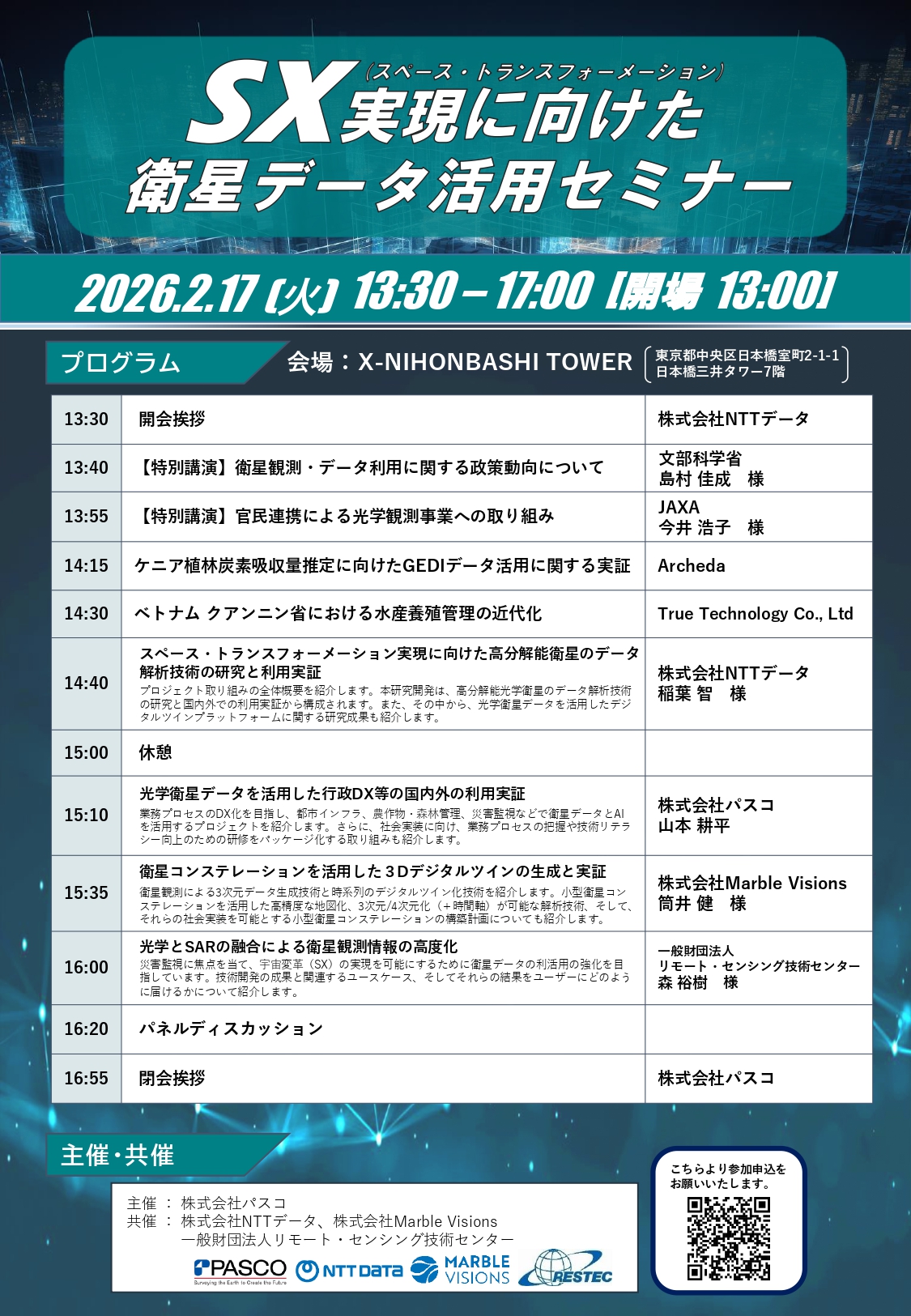 □共催:株式会社NTTデータ、株式会社Marble Visions、一般財団法人リモート・センシング技術センター