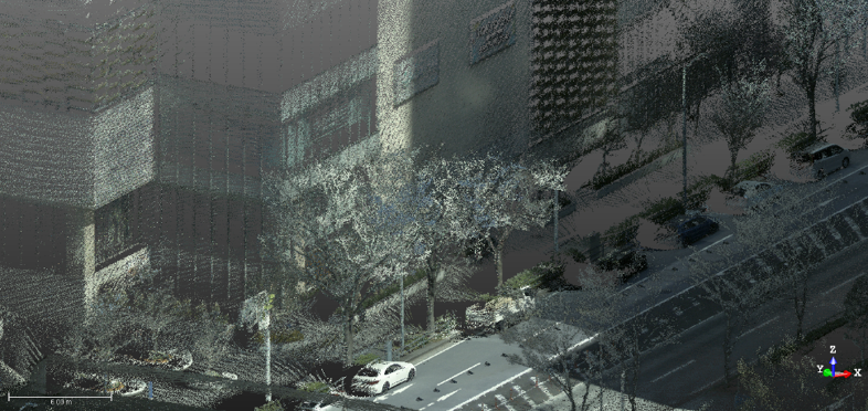 地上センサで取得した三次元情報の点群データ。衛星データの補完・補強に有効