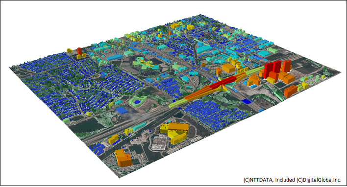 各種キャリアに対応した無線の電波伝搬解析、自動運転(IoT)における車車間通信の電波伝搬解析等に最適な高精度なデータセット一式を、高精度衛星画像による高さの取得、センサーによる被覆分類等により提供します。